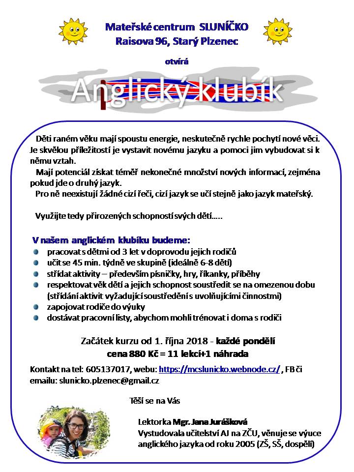 Počet účastníků omezen, nutné přihlášení předem přes zprávy na FB či email slunicko.plzenec.@google.cz