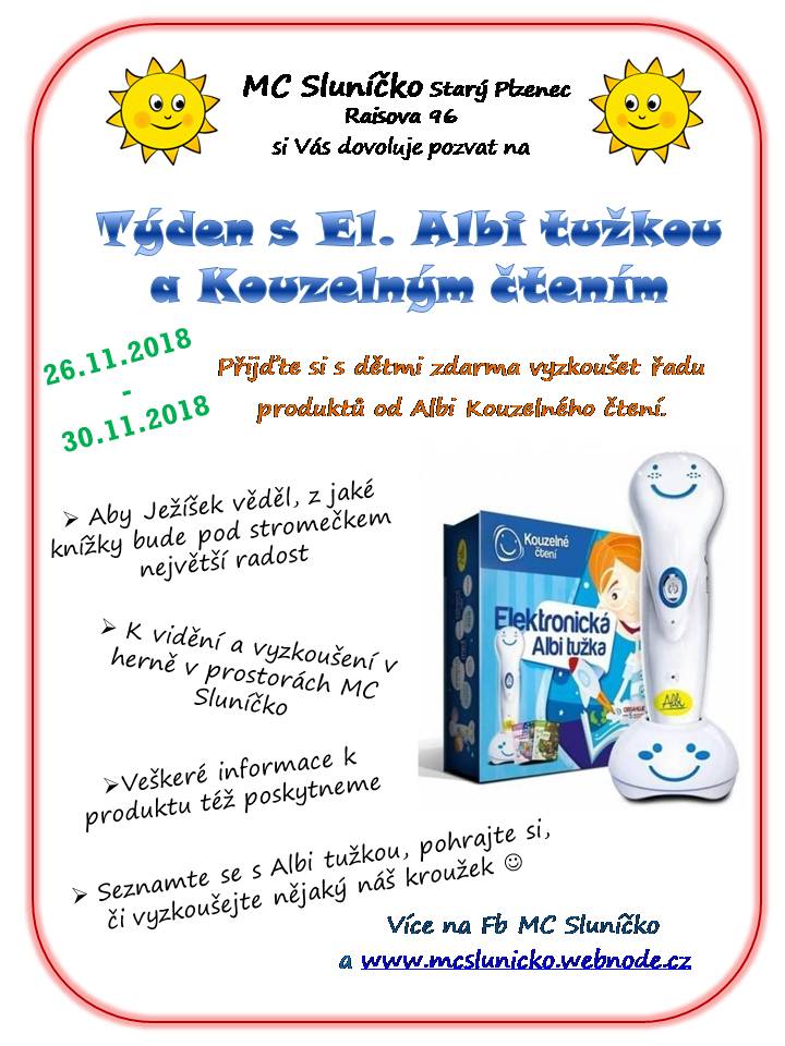 Od pondělí 26.11. do pátku 30.11. je možné vyzkoušet si mnoho produktů od Albi Kouzelné čtení ve Sluníčku zdarma! :)
